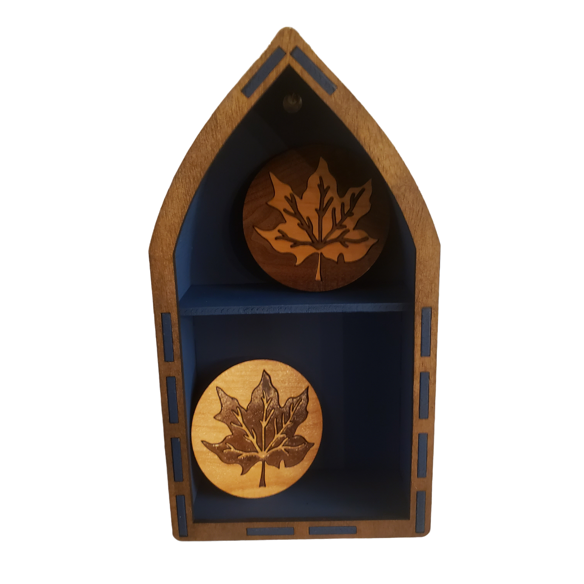 Bring a nautical touch to your living space with our Rowboat Shelf. Available in two sizes and in a variety of colors, this handmade shelf is crafted from birch ply with an early American stain gunwale for a polished and sturdy finish. Perfect for wall mounting or tabletop, you'll love the versatility and charm it brings to your home.